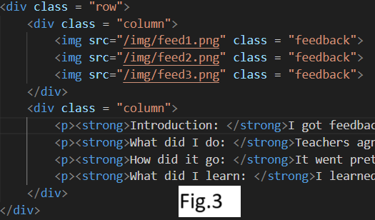 What did I do: I implemented my portfolio for 2nd semester in HTML and CSS which shows my coding skills, not on a very high level I agree but still it shows that at least I know the basics. For example I used the grid in the home page to organize my personal photos in a rectangle with text inside. (see fig.1 and fig.2 both HTML and CSS) I used flex box for organizing the content and pictures the way I want for absolutely every proof in my portfolio, to see an example how it looks like check fig.3 and fig.4 for both HTML and CSS). Also, because of flex box and grid and I used max and min width and height instead of just width and height my website is responsive, not fully responsive because we still need to have some workshops with Maikel about this so in the end I will try to make it fully responsive.