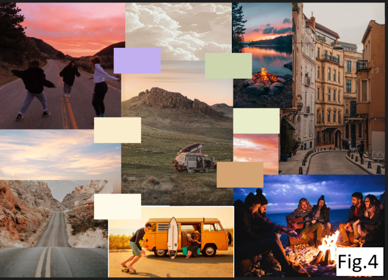 What did I do: I made the first version of Mood Board(see fig.1) based on Owen’s presentation where I tried to get his mood, favourite colors and feelings so I can put it all together in a mood board. After I showed him he said I chose too many colorfull pictures and should have used more grounded colors. So I made the second version of mood board(see fig.2) where I decided to use just one colorfull purple picture and to put it in the center and rest of them are grounded and natural colors. After Owen checked one more time he said that purple doesn’t really fit well there and that I should find a great green picture(you can see his comments also in fig.2 down part) So I started to iterate again and put a green image in the center and also changed some of other images(see fig.3) And finally he liked all the images and how I organized them but there was still a thing with color palette, he said I used too raw colors.(you can see his comments also in fig. 3 down part) By that time Kate worked on a color palette which Owen liked it so I took 5 colors from her but I still needed to find one more which I had to search for. After analysing all possible colors for the color palette me with Owen concluded that this is the final version of our Mood Board(see fig.4)