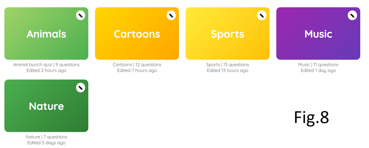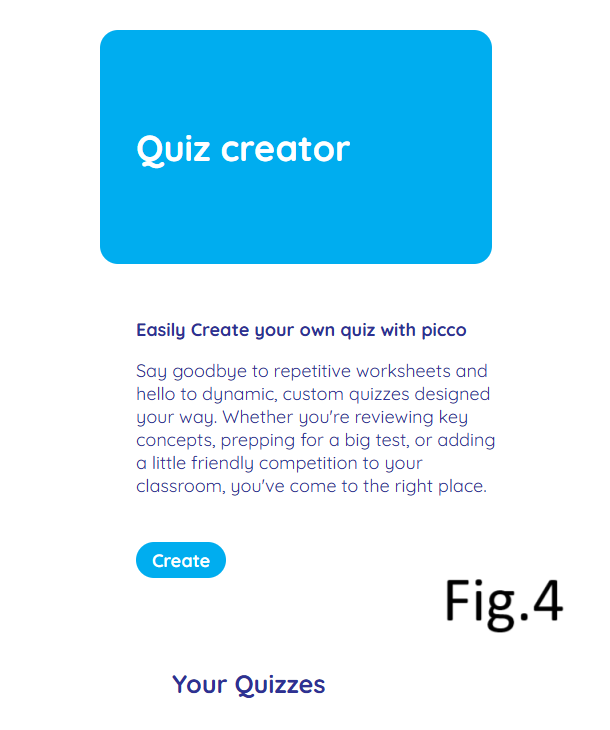What did I do: Firstly, I created a fully responsive header following a YouTube tutorial, here is the link to the tutorial if you need: Click here. So to create a fully responsive header for both desktop (check fig.1) and mobile phones (check fig.2) I used media queries. I set it till 599px for phones (Click here if you want to see the code) and over 600px for tablets or desktop (Click here to see the code). Obviously that I used flex box in both cases: display: block for phones and display flex with space between for desktop. But in case of mobile version I needed to use some basic JavaScript to trigger the burger menu so by clicking on it vertical menu appears (Click here to see the code.). Also some elements like Quiz creator rectangle, the text under it and the “Create” button (check fig.3) are bigger on desktop and on phones I made them smaller in size (check fig.4) so they don’t take so much space on phone’s screen, I did it using media queries as I mentioned above. And the ‘Create Quiz” image which can be seen on desktop disappears on phones because there is no space for it and it becomes unnecessary. I saw the same thing on the real picoo website how images are not shown on phones but just on desktop (check fig.5 and fig.6) so that’s why I decided to do the same. One more thing about responsiveness is how I used grid for existing quizzes by writing just one line of code I made all those cards fully responsive on all devices (Click here to see the code.). For example, on desktop they will be placed in one line (check fig.7), on tablets they will be 4 cards in a row and 1 underneath (check fig.8), if the screen is a little smaller they will be placed 3 in a row and 2 underneath (check fig.9) and so on till the screen will be less than 600 px, then all cards will be placed in a row (check fig.10).