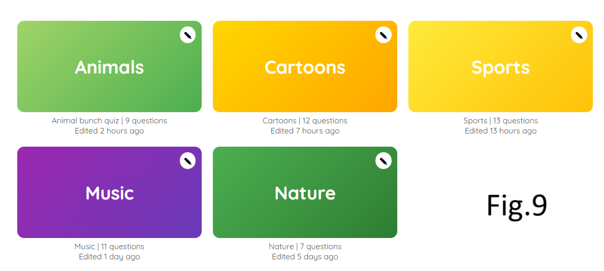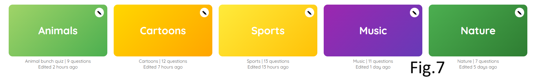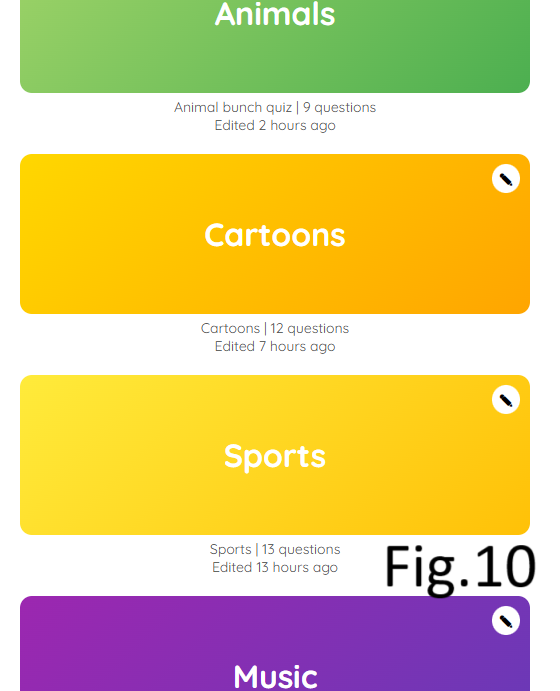 What did I do: Firstly, I created a fully responsive header following a YouTube tutorial, here is the link to the tutorial if you need: Click here. So to create a fully responsive header for both desktop (check fig.1) and mobile phones (check fig.2) I used media queries. I set it till 599px for phones (Click here if you want to see the code) and over 600px for tablets or desktop (Click here to see the code). Obviously that I used flex box in both cases: display: block for phones and display flex with space between for desktop. But in case of mobile version I needed to use some basic JavaScript to trigger the burger menu so by clicking on it vertical menu appears (Click here to see the code.). Also some elements like Quiz creator rectangle, the text under it and the “Create” button (check fig.3) are bigger on desktop and on phones I made them smaller in size (check fig.4) so they don’t take so much space on phone’s screen, I did it using media queries as I mentioned above. And the ‘Create Quiz” image which can be seen on desktop disappears on phones because there is no space for it and it becomes unnecessary. I saw the same thing on the real picoo website how images are not shown on phones but just on desktop (check fig.5 and fig.6) so that’s why I decided to do the same. One more thing about responsiveness is how I used grid for existing quizzes by writing just one line of code I made all those cards fully responsive on all devices (Click here to see the code.). For example, on desktop they will be placed in one line (check fig.7), on tablets they will be 4 cards in a row and 1 underneath (check fig.8), if the screen is a little smaller they will be placed 3 in a row and 2 underneath (check fig.9) and so on till the screen will be less than 600 px, then all cards will be placed in a row (check fig.10).